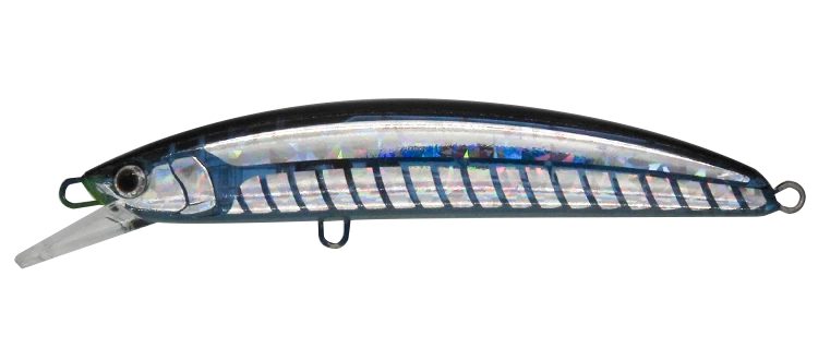 The design holo transmits red light and expresses a sardine bleeding with blood that was weakened by being chased by a blue one. Since red is noticeable in water, it has a high visual appeal.