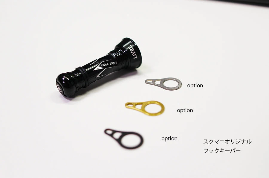 A limited edition Livre reel balancer by Squid Mania custom balancer can be attached to the reel for the purpose of being of control the centre of gravity for the reel. It is a counter weight for the handle weight which leads to better balance and less wobble.