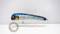 Bazoo, a popping popper that creates a large amount of bubbles appealing strongly to the target with a heavy pop sound. The columnar shape that reduces air resistance hits the longest distance of a CB One’s wooden lures. The unique cup shape enhances the amount of bubbles and water entanglement, and it is easy to reliably decide the swimming from the first action even under rough water surface.Â