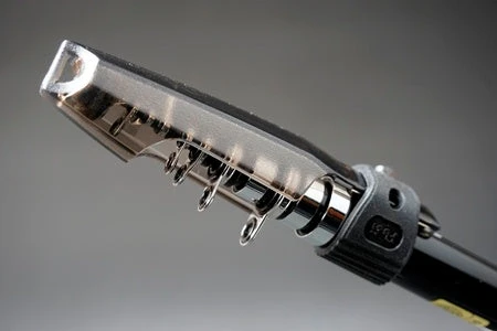 | Model | Total Length (m) | Number of joints (Section) | Collapsed Length (cm) | Weight (g) | Tip diameter /Butt diameter (mm) | Weight Load (No.) | Compatible Nylon Line (No.) | Carbon content (%) | ||
