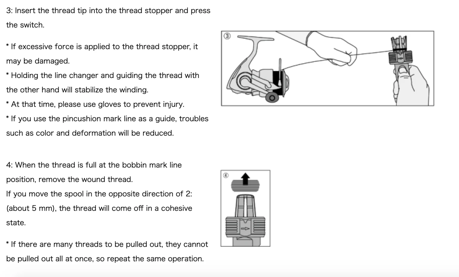 Unique structure that allows winding of PE line with soft thread itself. * If you use it for nylon fine thread, the thread shrinks strongly and the wound thread will not come off, so please do not use it.