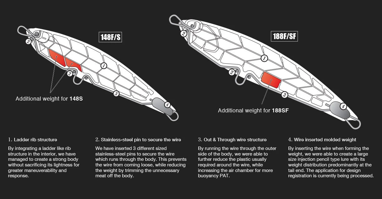 We present you the slow floating single hook tuned Aomasa 188SF. It is a diving pencil type lure able to conduct a side to side slalom type swimming action, known to be productive for large bluerunners. We have especially released this single hook version for increased hook strength, reduction in drag during its casting and its outstanding ability to reduce hook-offs during the fight.
