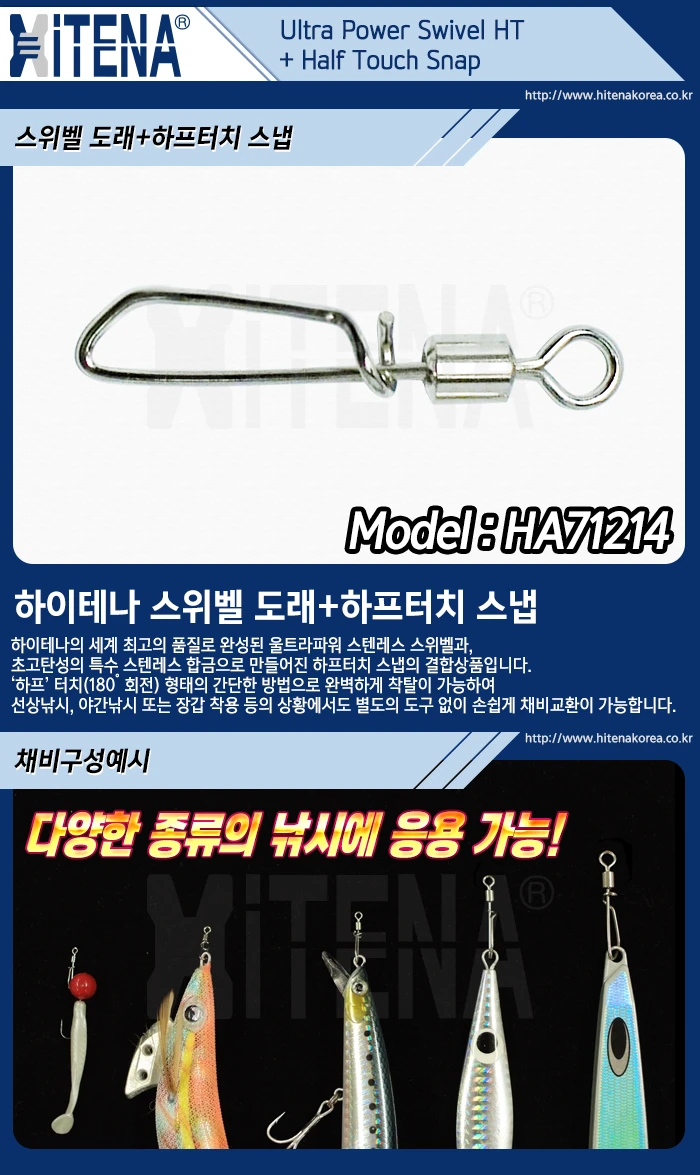 HITENA produces only the highest quality fishing equipment through constant innovation and improvements, the Ultra Power Half Touch Snap Swivel is no exception.