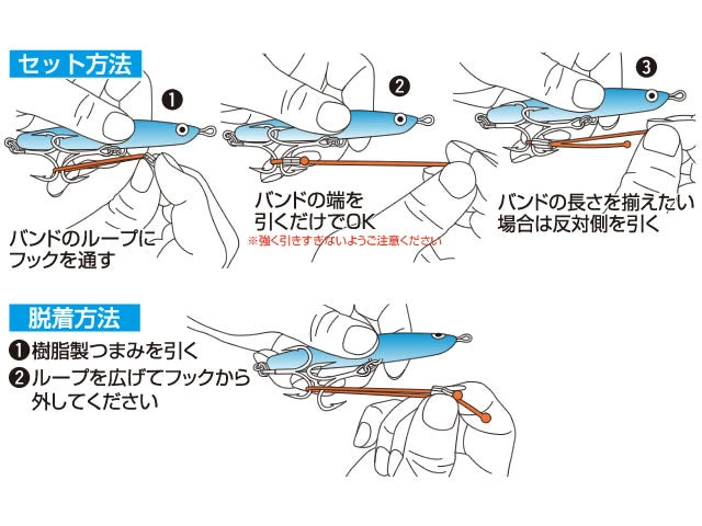 A simple hook band to keep your lures neat, reducing the chance for hooks from tangling with other lures and getting damaged. Fit with a gripper which simply tightens the band once adjusted to reduce tangling.Â