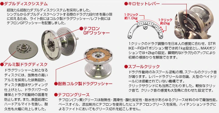 On our L50 reel series you get 0.5kg per drag click. You will get an additional 2kg in the max drag position. With our L120 series reel you will get 1kg per drag click and also 2 additional kilograms in the max drag position.